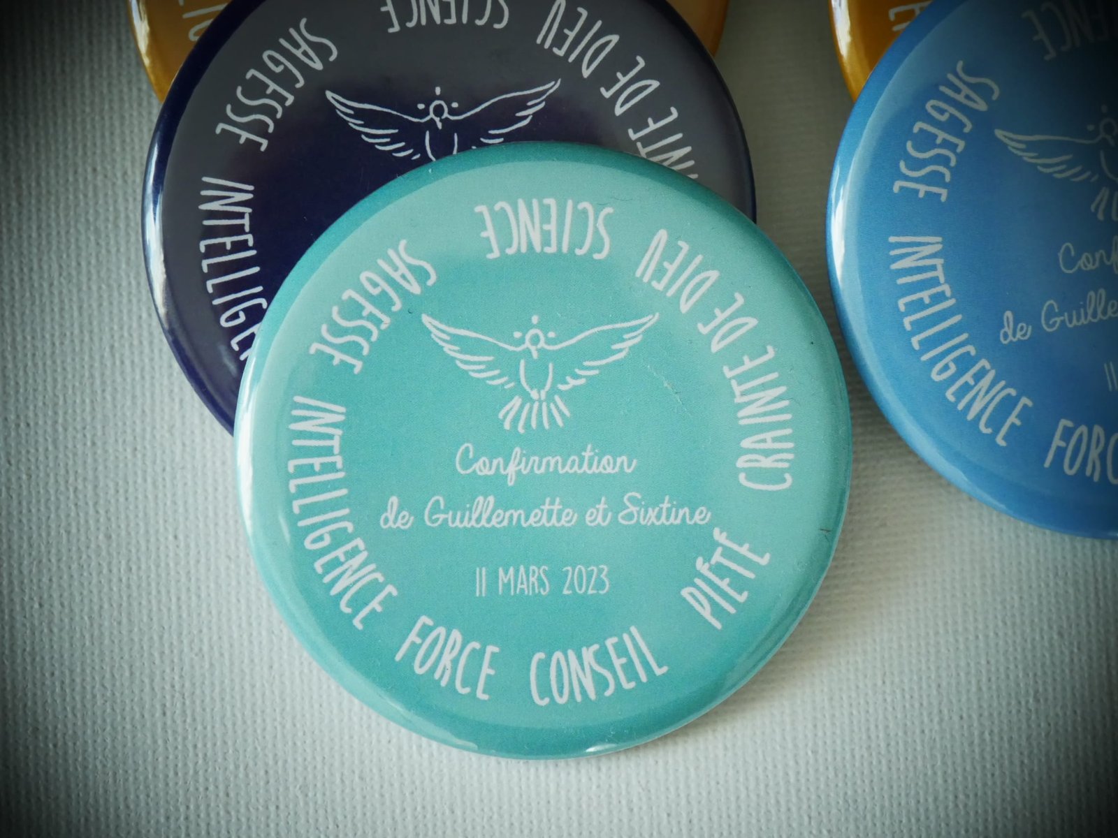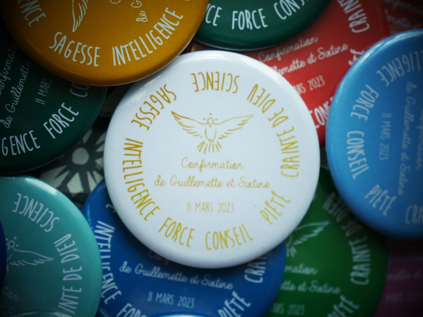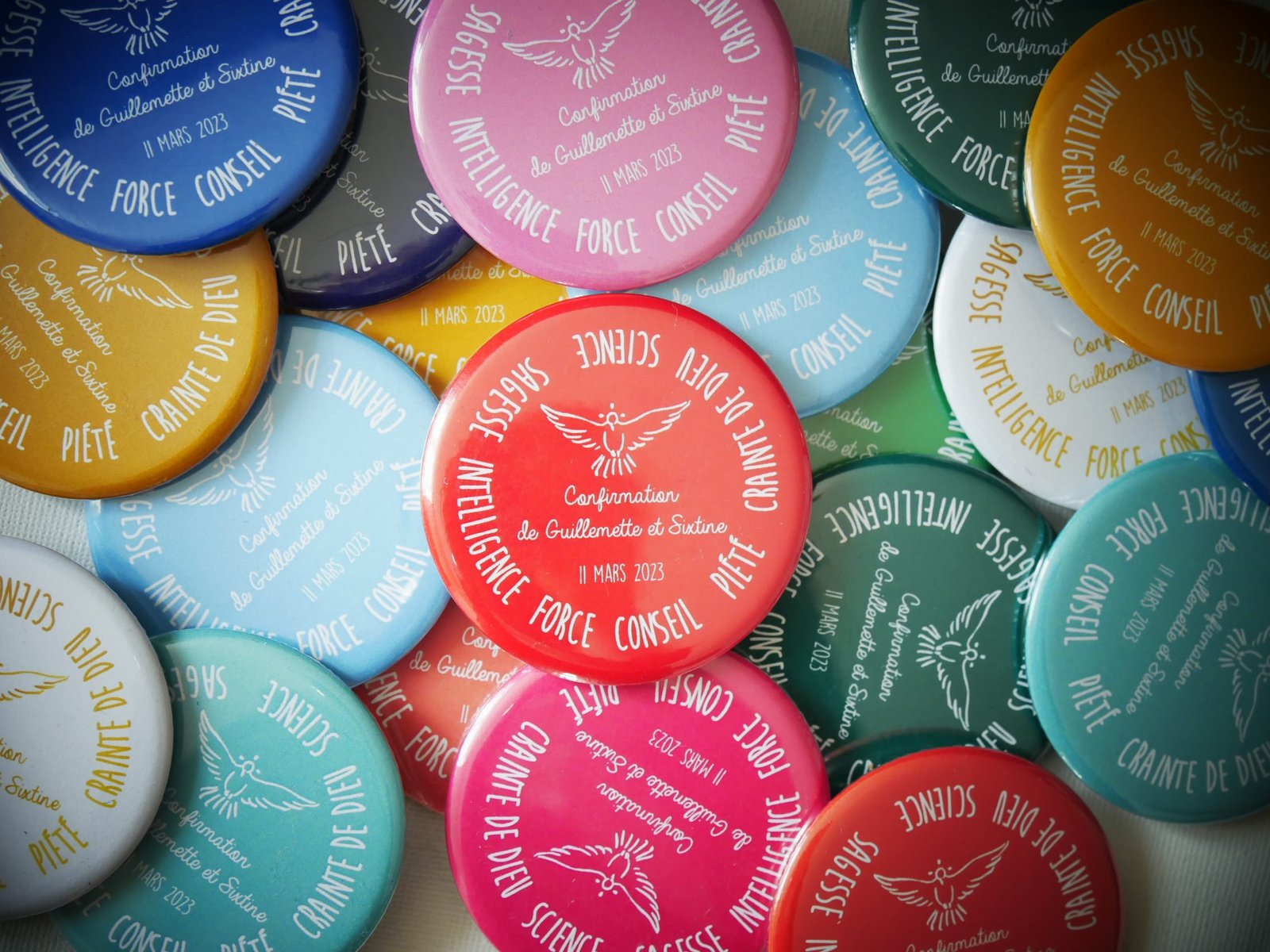 Les 7 dons de l’Esprit Saint sur des aimants de toutes les couleurs, petit cadeau pas cher et sympa pour un souvenir parfait!