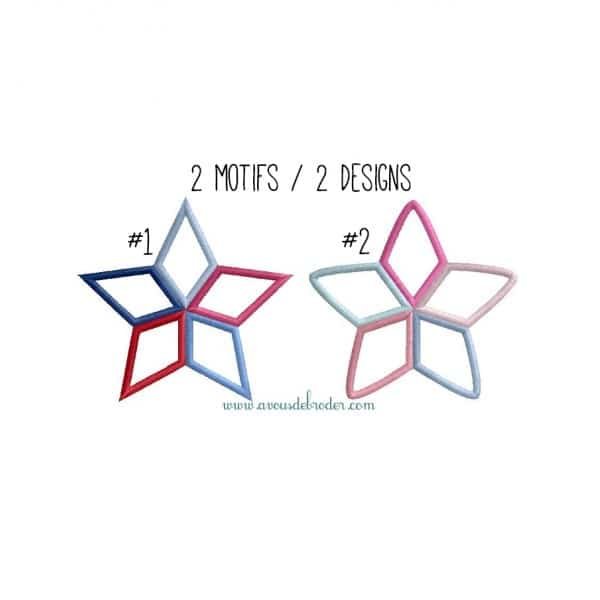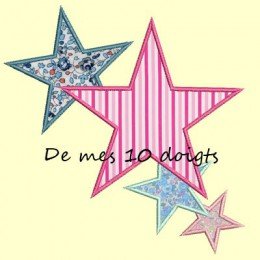 | Motif de broderie | Trio de pommes, trio de glaces, trio d oiseaux, Happy, corde à linge poissons, corde à linge fanions marins, Etoile prénom, Défilé d étoile, crois scout europe, couverts bébé, corde à line étoile, canard, contour étoile, planneur et nuage, smile, trio de soldats, trio d oursons guimauve, trio poissons, Etoiles suspendues, Etoiles divisées, since star, Chat couronné, Ecusson poisson, Petit Prince, Petite Princesse, caroussel, Cadre constellation, Cadre rond clochettes muguet, bouquet ballons formes, Bon appétit, Bichette, Bibiche, biberon, Be Happy, 5 étoiles, Nuage étoiles suspendues, moustache |