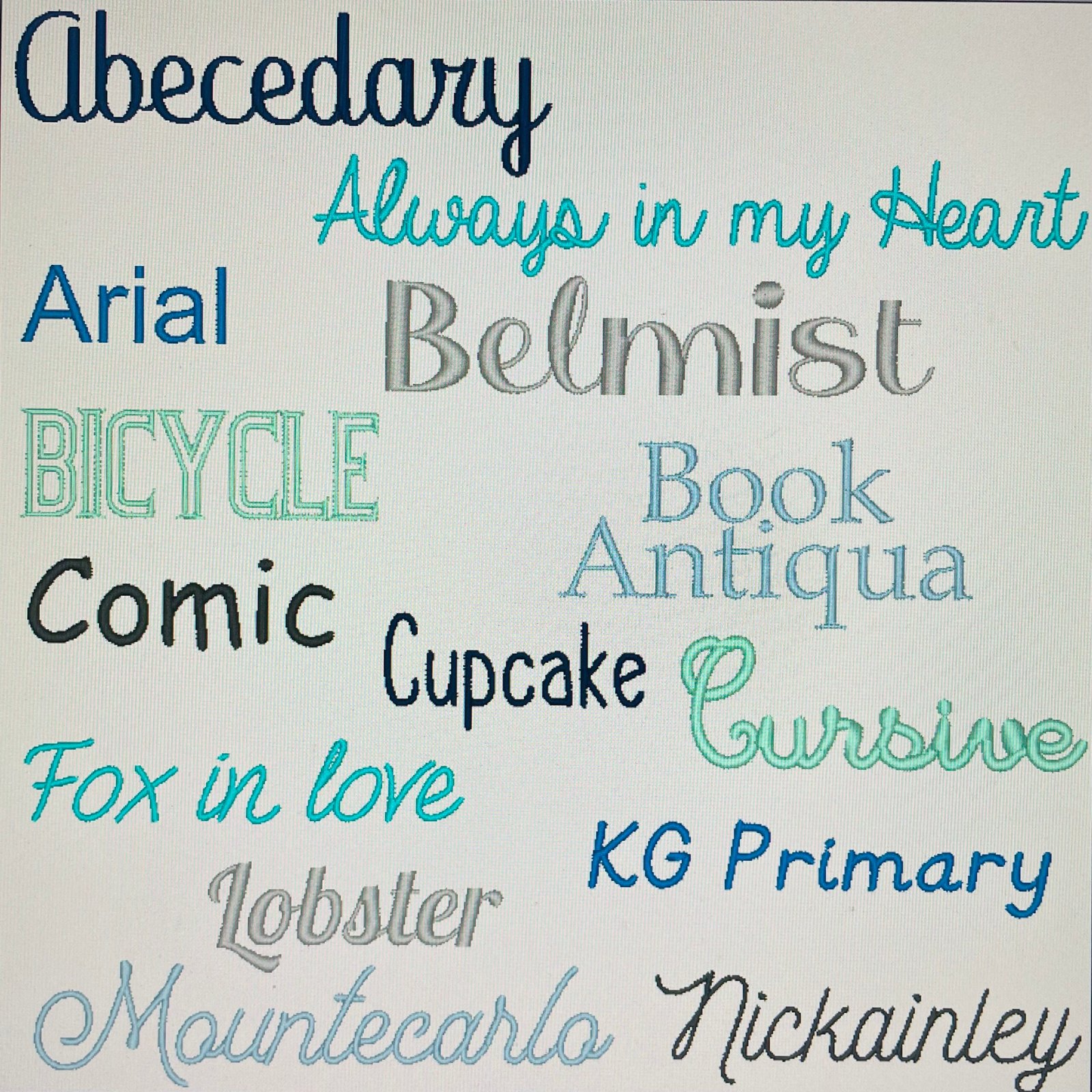 | Typographie | Abecedary, Always in my heart, Arial, Belmist, Bicycle, Book Antiqua, Comic, Cupcake, Cursive, Fox in Love, KG Primary, Lobster, Montecarlo, Nickainley |