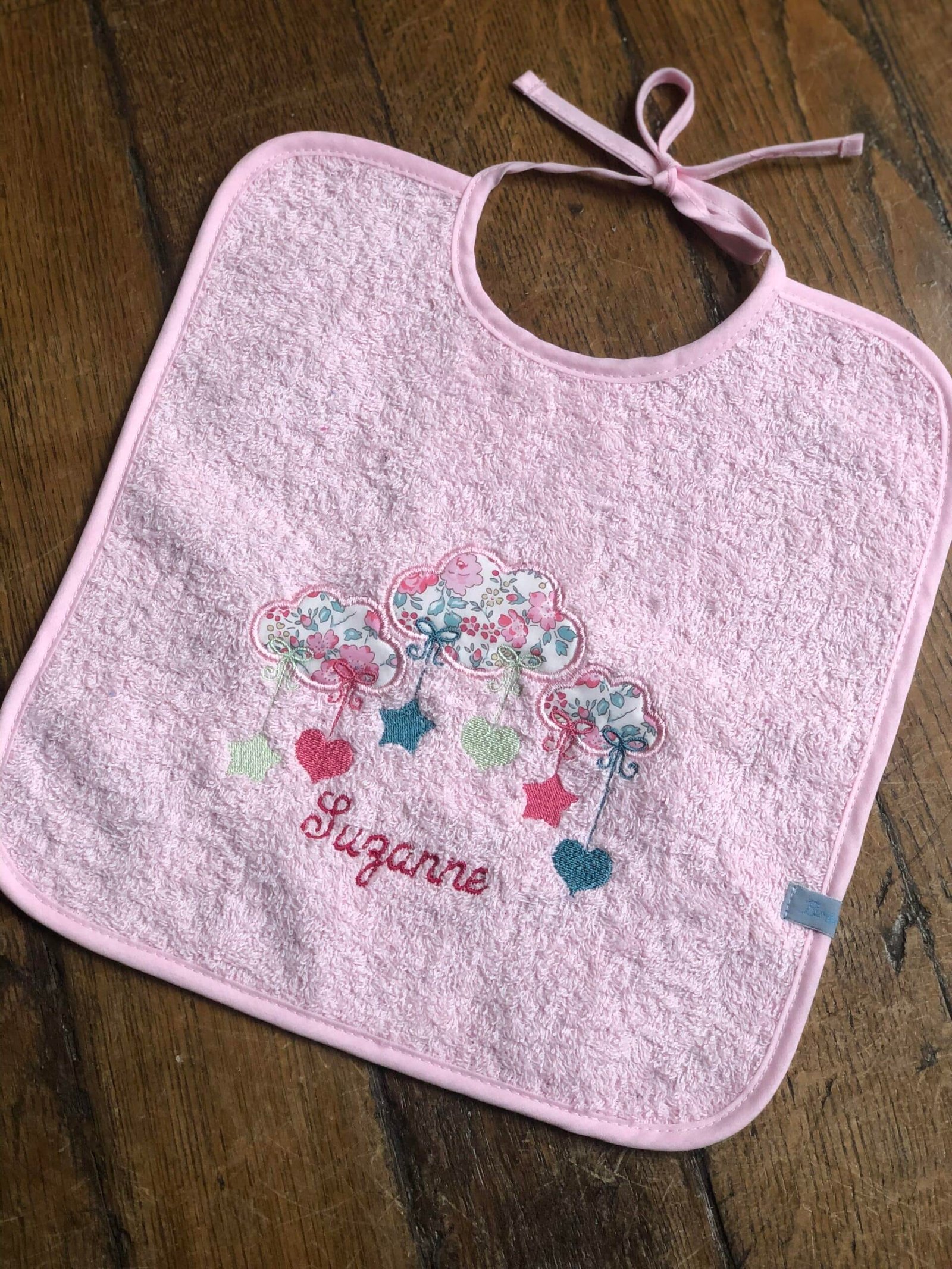 Cadeau de naissance par excellence, le bavoir brodé est un incontournable ! Que ce soit pour essuyer la bavouille des bébé qui font leurs dents ou les premières cuillères de purée de légumes et de compotes, il n’attend que vos idées pour devenir un cadeau personnel !