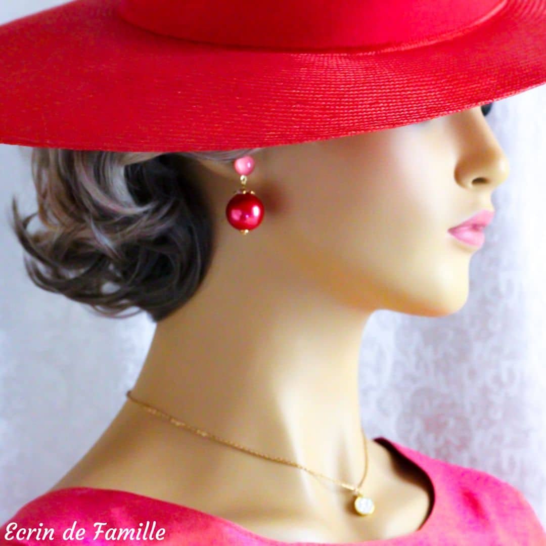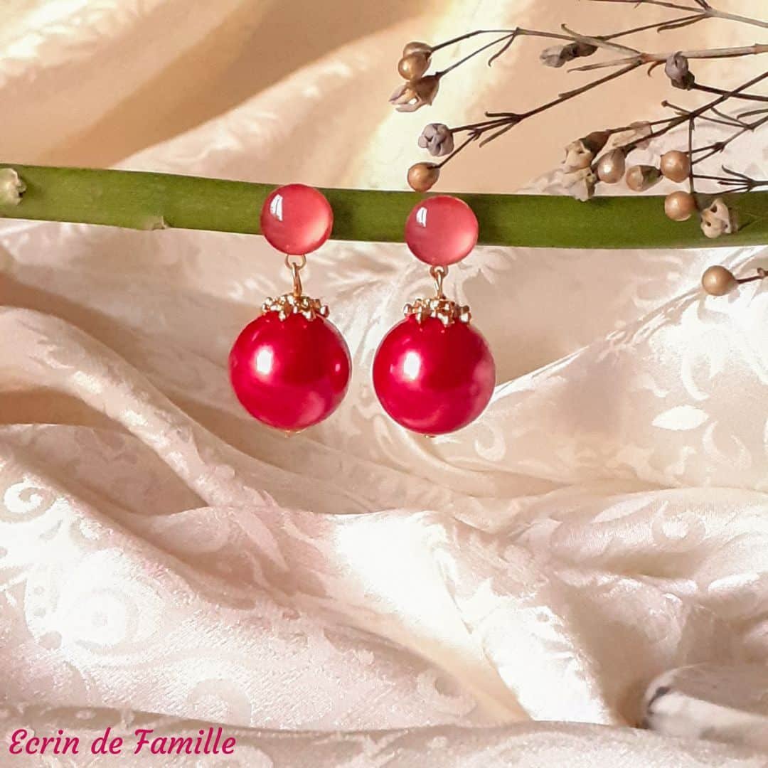 On a envie de les croquer en toutes saisons, les boucles Sherry ! Semblables à de grosses cerises très appétissantes, elles sont composées d’une perle XXL nacrée rouge décorée d’une collerette crénelée dorée et d’un clou portant un joli cabochon lumineux qui prendra toute sa lumière au soleil.