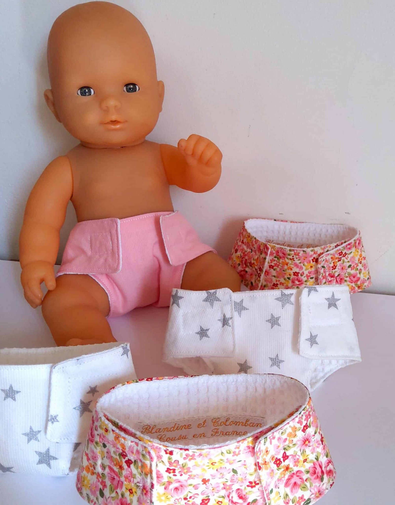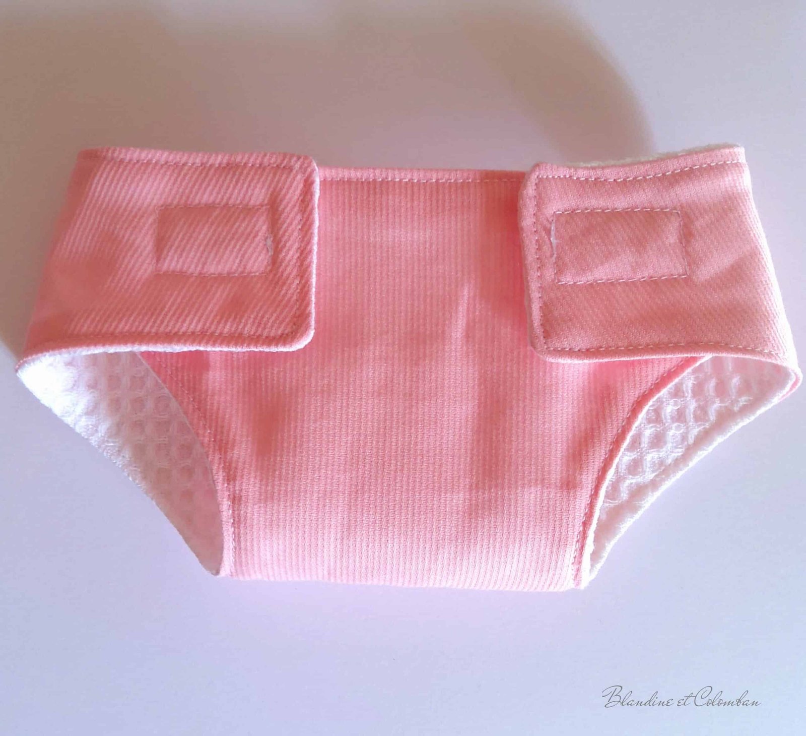 Couche pour poupon en piqué de coton rose. Lavable en machine à 30°.