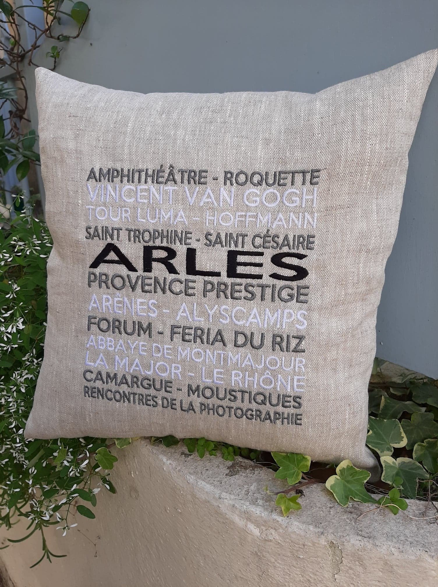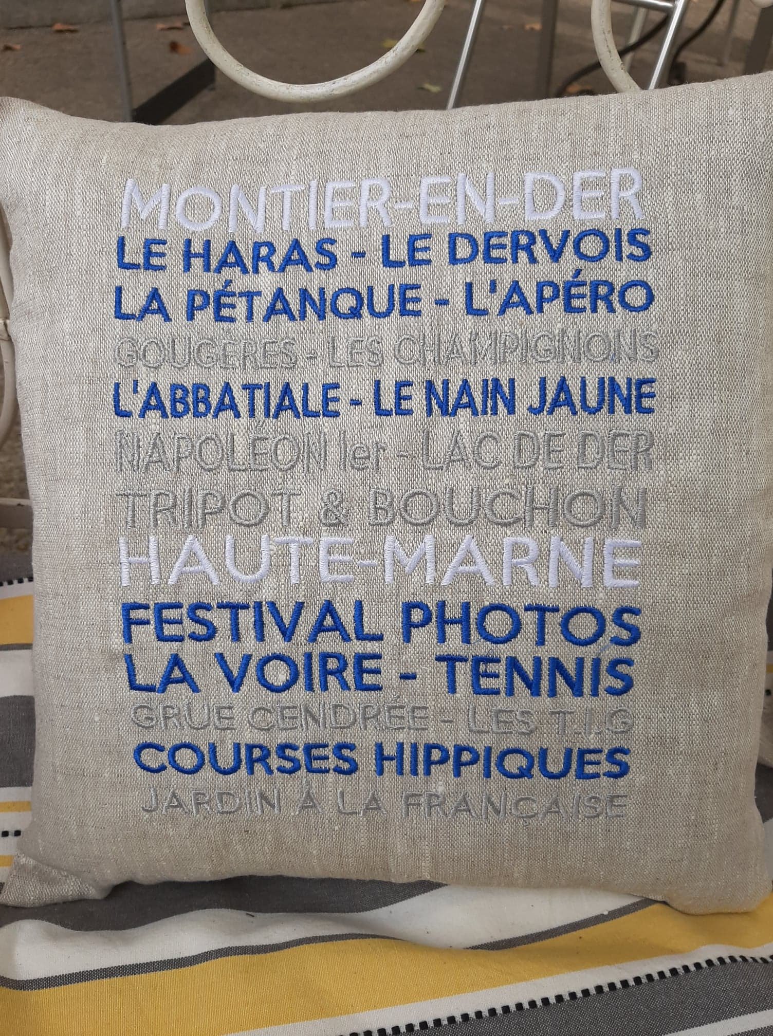 Je suis heureuse de vous présenter les coussins brodés dans mon atelier. Ces coussins sont en lin déhoussable et personnalisables avec les caractéristiques de votre ville ou de votre région. Que ce soit pour offrir en souvenir à un ami qui déménage ou pour décorer votre propre maison, ces coussins brodés seront un véritable atout.